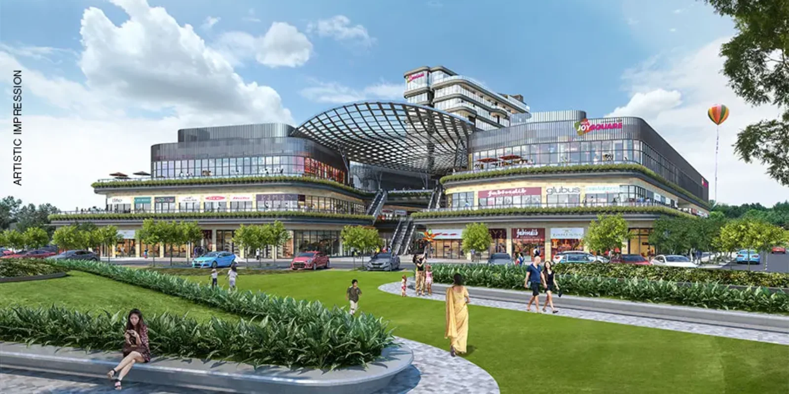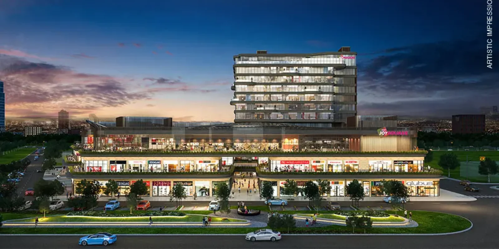 AIPL Joy Square is a mixed-use high-street development with retail shops, hypermarket, food court, F&B outlets, and branded serviced apartments all in one G+9 setup at AIPL Joy Square Sector 63A.